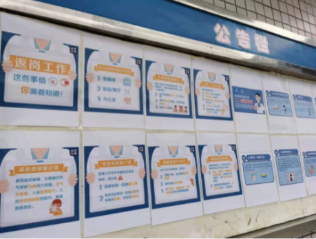 ▲在公告欄及顯眼位置張貼宣傳資料,提高員工防疫意識